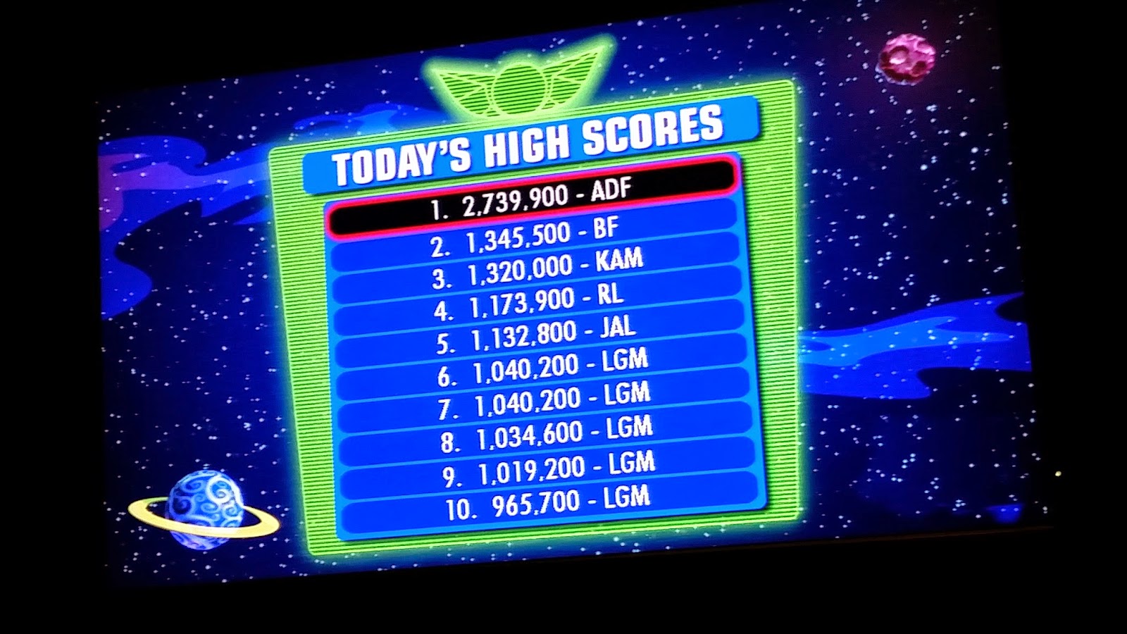 Today was a good day. My prior best at Disneyland's Astro Blasters was around 800,000. Today: